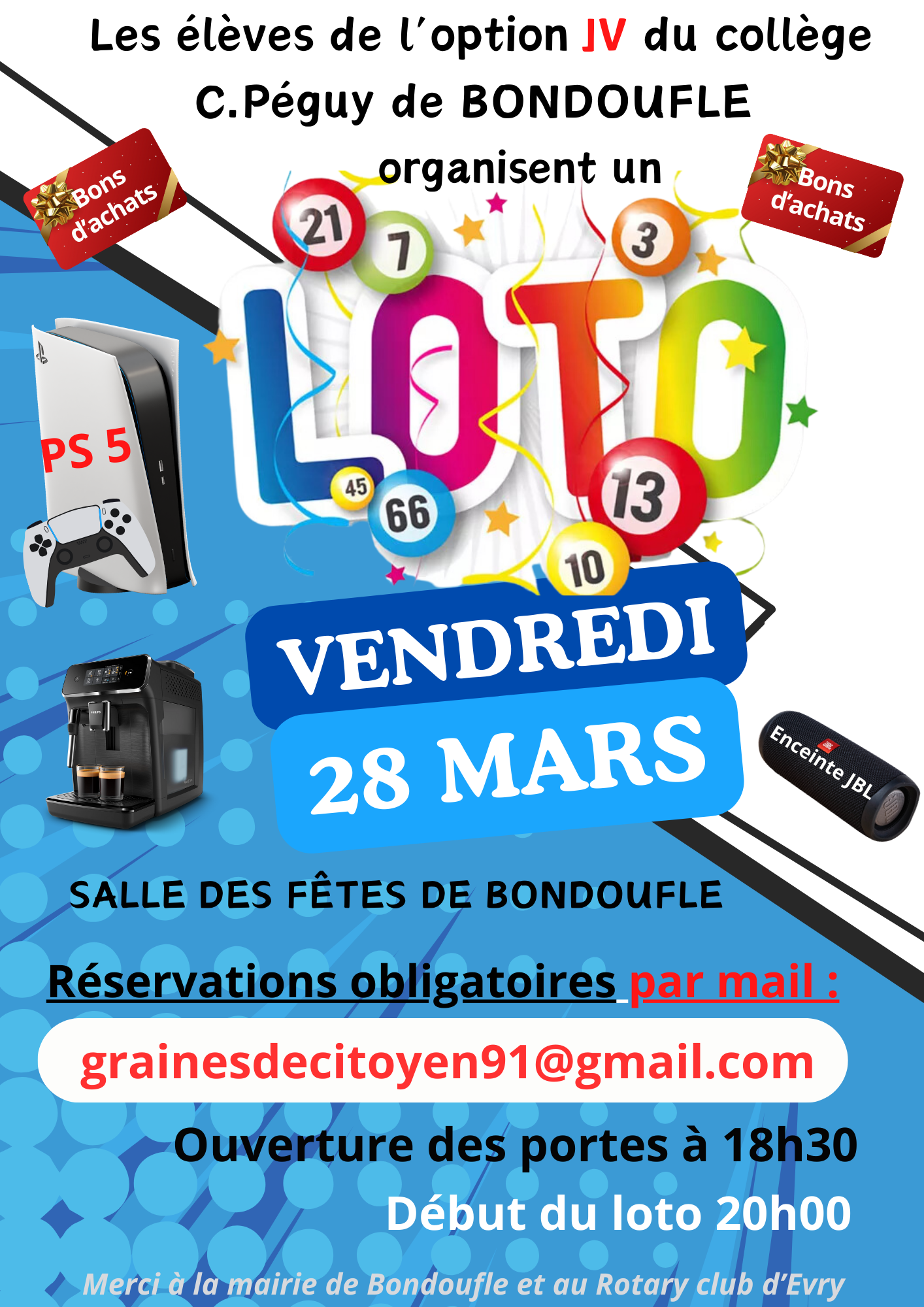 Les élèves de l’option JV vous proposent de participer au grand loto qu’ils organisent pour financer leur voyage de fin d’année.